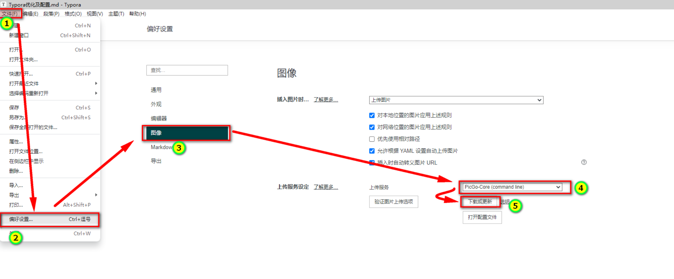 文件->偏好设置->图像->PicGo-Core(command line)->下载或更新。