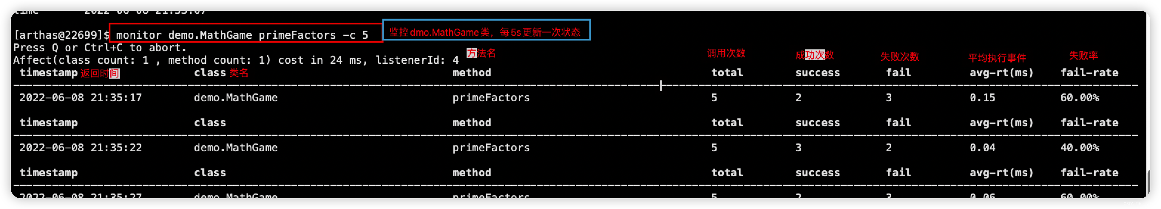 用来监视一个时间段中指定方法的执行次数,成功次数,失败次数,耗时等这些信息
