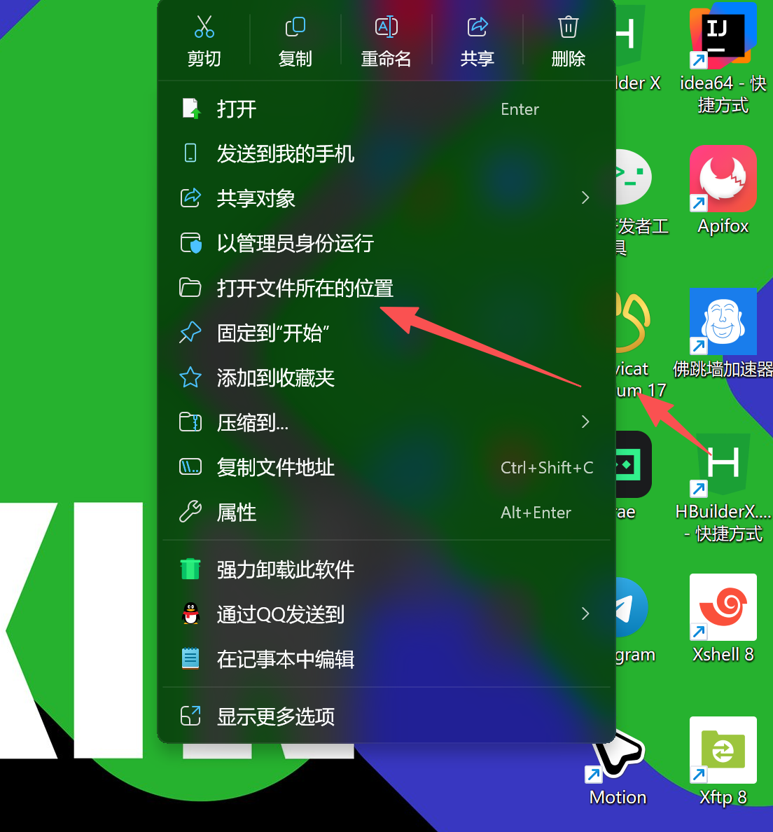 - 选中navicat右键点击打开文件所在位置